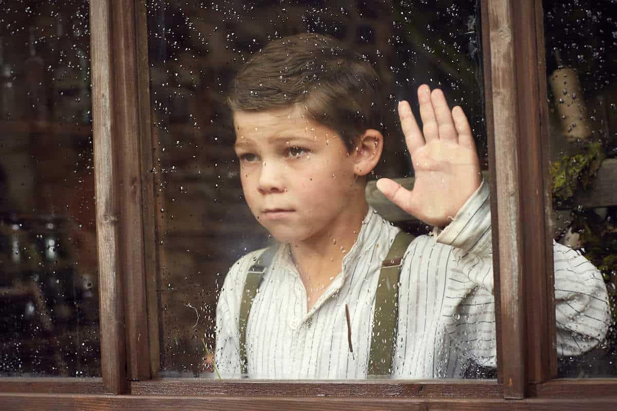 Georgie Smith and Archie Cox are the two young actors embodying the character of Laurie Lee (or Loll as everyone calls him) in his prepubescent and teenage years respectively. When Loll begins to attend school, he meets a pair of girls who he’ll end up going to school with for the next 10 years: Jo and Rosie. The girls are played by Isabella Polkinghorne (as young Jo) and Maya Gerber (Jo as a teen) and Libby Easton (Rosie as a young girl) and Ruby Ashbourne Serkis (as older Rosie). Together, these four actresses portray the stages of a girl’s blossoming — from “puppishly” pretty to beautiful. Despite choosing newcomers for the lead roles, the casting of the film is a complete success as everyone, both children and adults, deliver natural performances that really boost the authenticity of their respective characters.